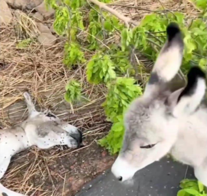 Um vídeo postado originalmente pelo perfil @pereira_aps, no tik Tok, e reproduzido por @altosantoenoticia, da cidade cearense de Alto Santo, onde ocupantes de um veículo se deparam com um jumentinho ao lado da carcaça da mãe morta em um acidente, tem circulado desde o último domingo (16) deixando os internautas comovidos. O caso aconteceu no sábado (15).